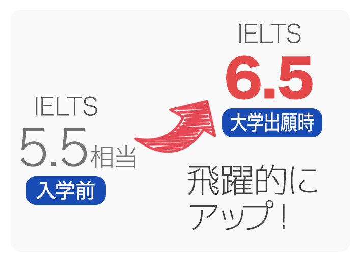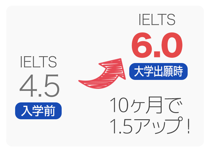 基礎力を向上させてから、最終的にはIELTS™クラスでNativeの先生に教えてもらいました。IELTS™クラスは試験官が教えてくれるためテスト対策としてもとても充実していたと思います。