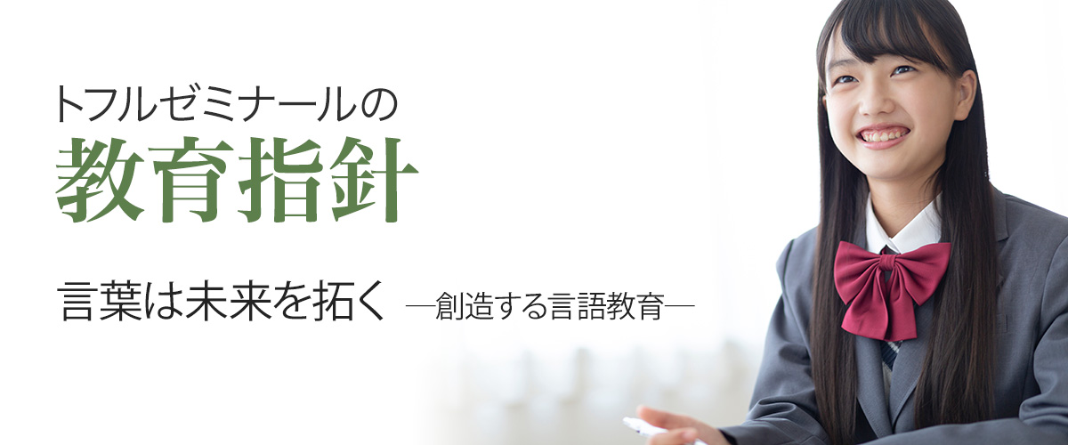 以上の基本認識に基づき、トフルゼミナールが提供するあらゆる教育機会は、常に三つのスキルすべての伸長に配慮した総合教育であるべきことを前提としつつ、以下に「トフルゼミナール英語教育指針」を掲げます。