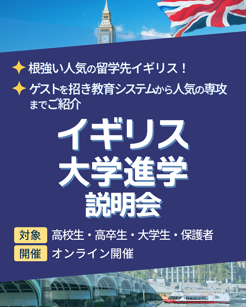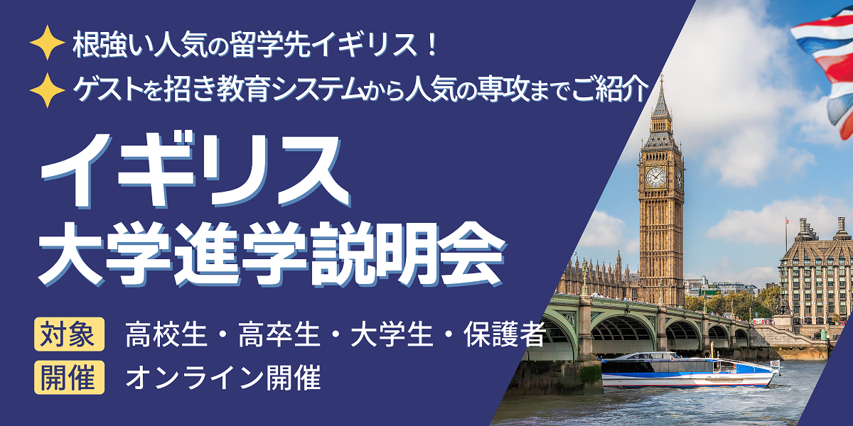 今回、留学生向けのプログラムを運営している教育機関の方をゲストにお迎えし、イギリス大学進学説明会を開催します。