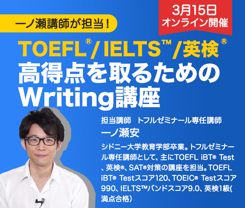 トップ > TOEFL®/IELTS™/英検® 高得点を取るためのWriting講座