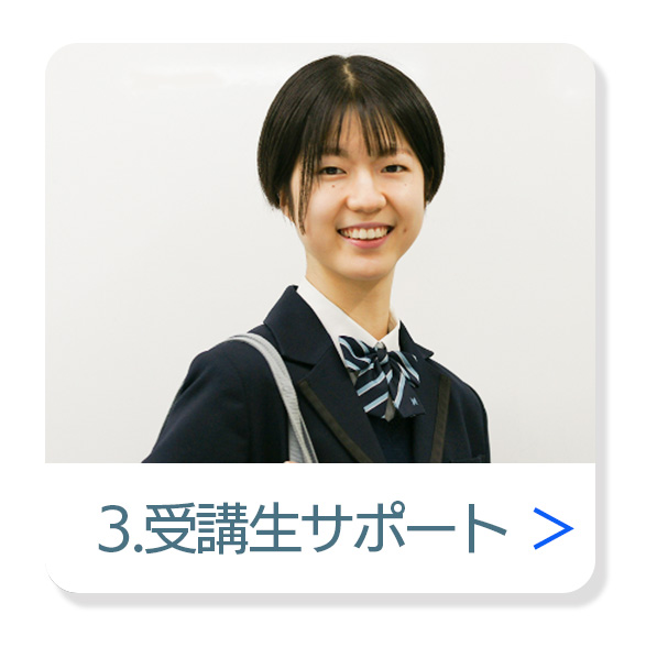 学習の進め方や学校の授業や部活との両立などの相談を、自身の経験から答えてくれたり、休んだ授業の補習もマンツーマンでお手伝いします。また通学が難しい学生はオンラインでフォローアップを受けることもできます。